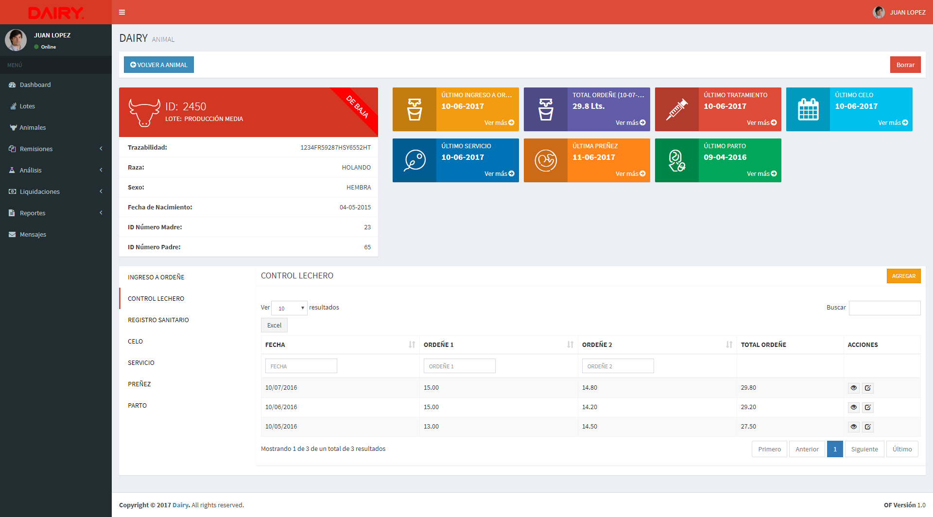 Un software 100% web orientado a Productores Lecheros e Industrias Lacteas donde cada uno podra administrar su negocio y asi fortalecer su rentabilidad, tendra toda su informacion a mano para la toma de decisiones.