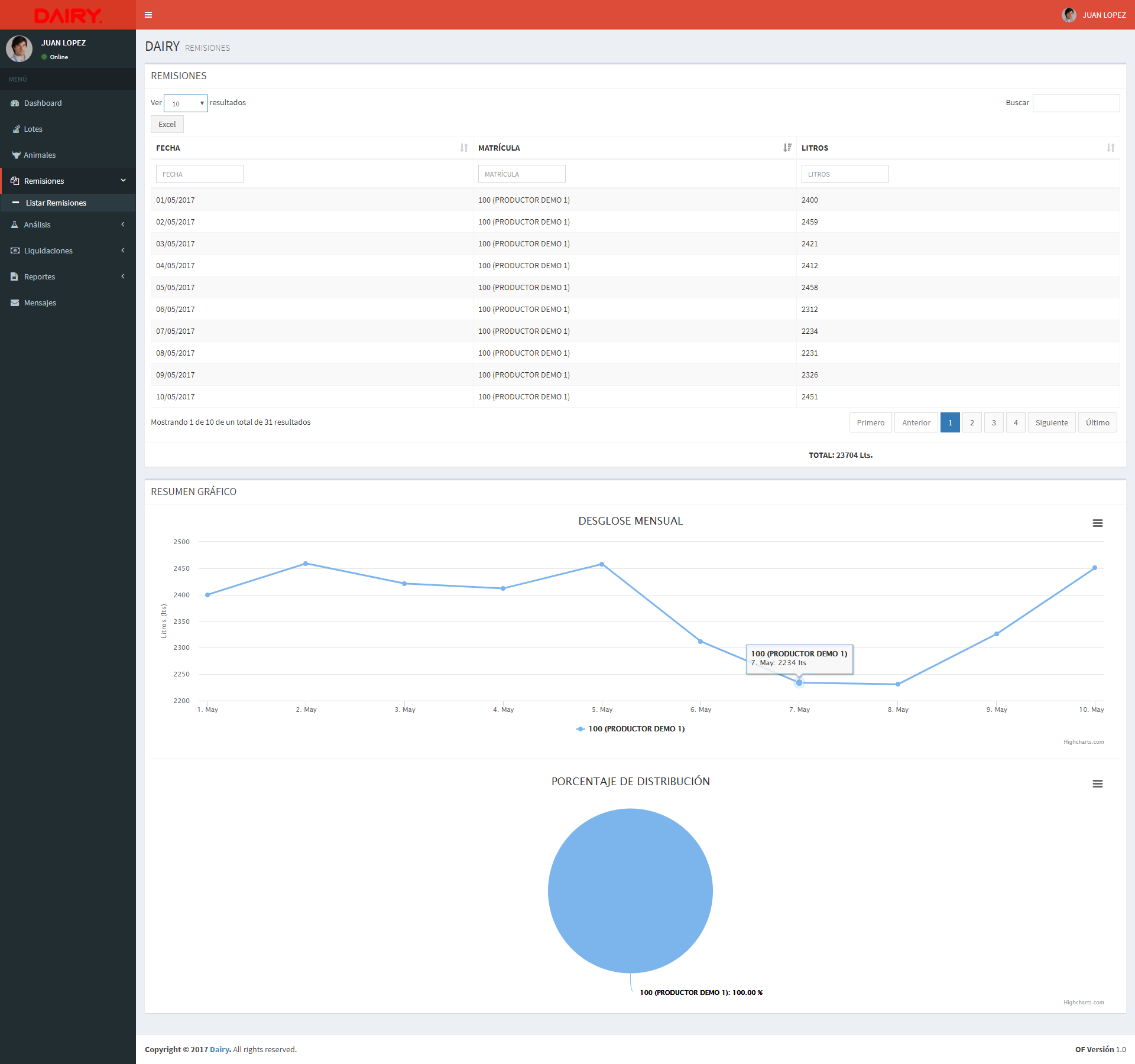 Si remite a una Industria que ya usa DAIRY podra tener en tiempo real las remisiones.